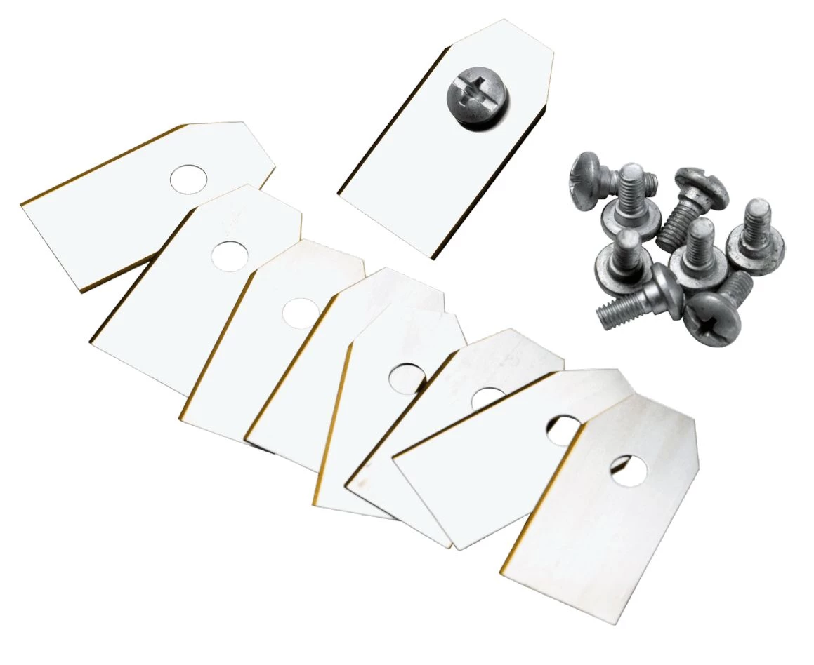 - L’emballage contient 9 lames de rechange et 9 vis de fixation.