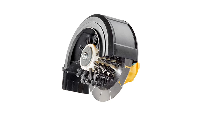 - En même temps, la brosse en nylon de 50 mm de large nettoie le bord de la pierre de la mousse et de la saleté.